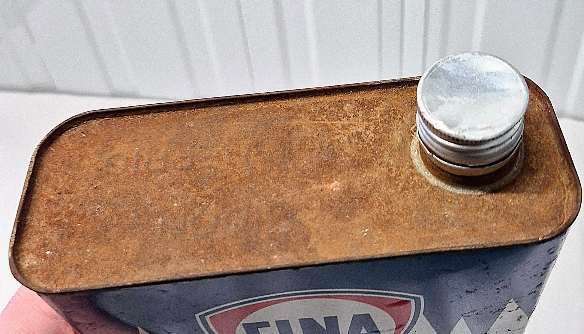 Joli bidon d'antigel Fina Termidor, bon état général, quelques traces de rouilles.