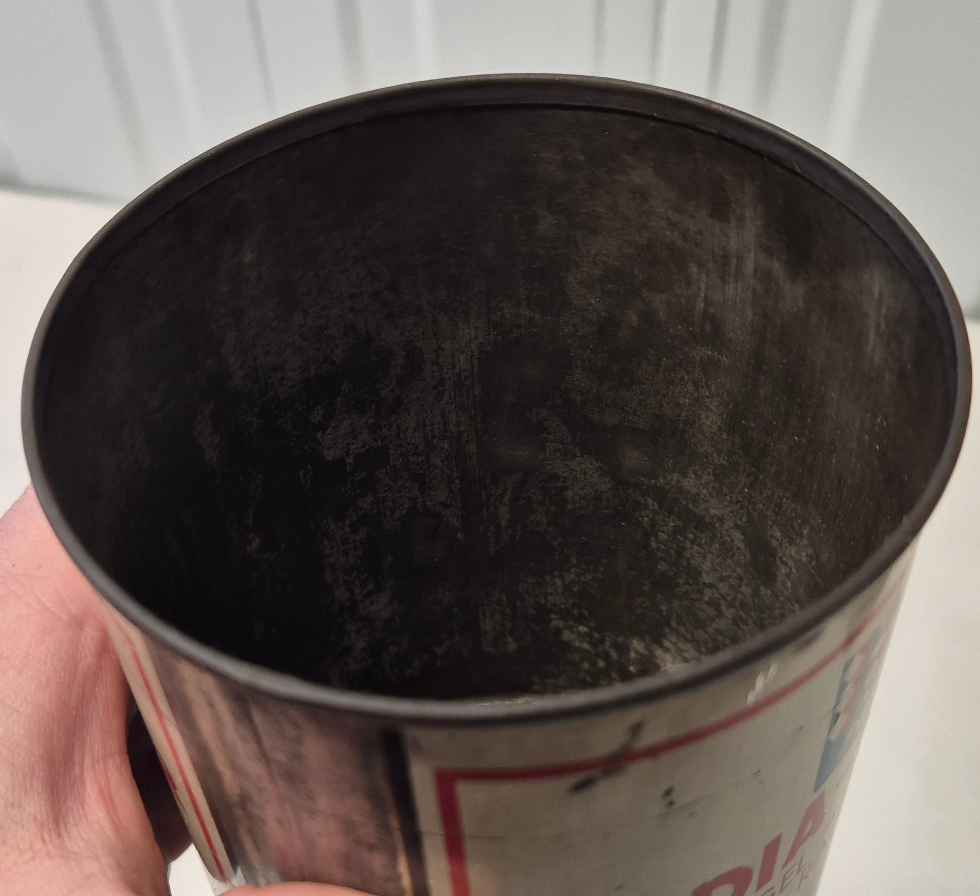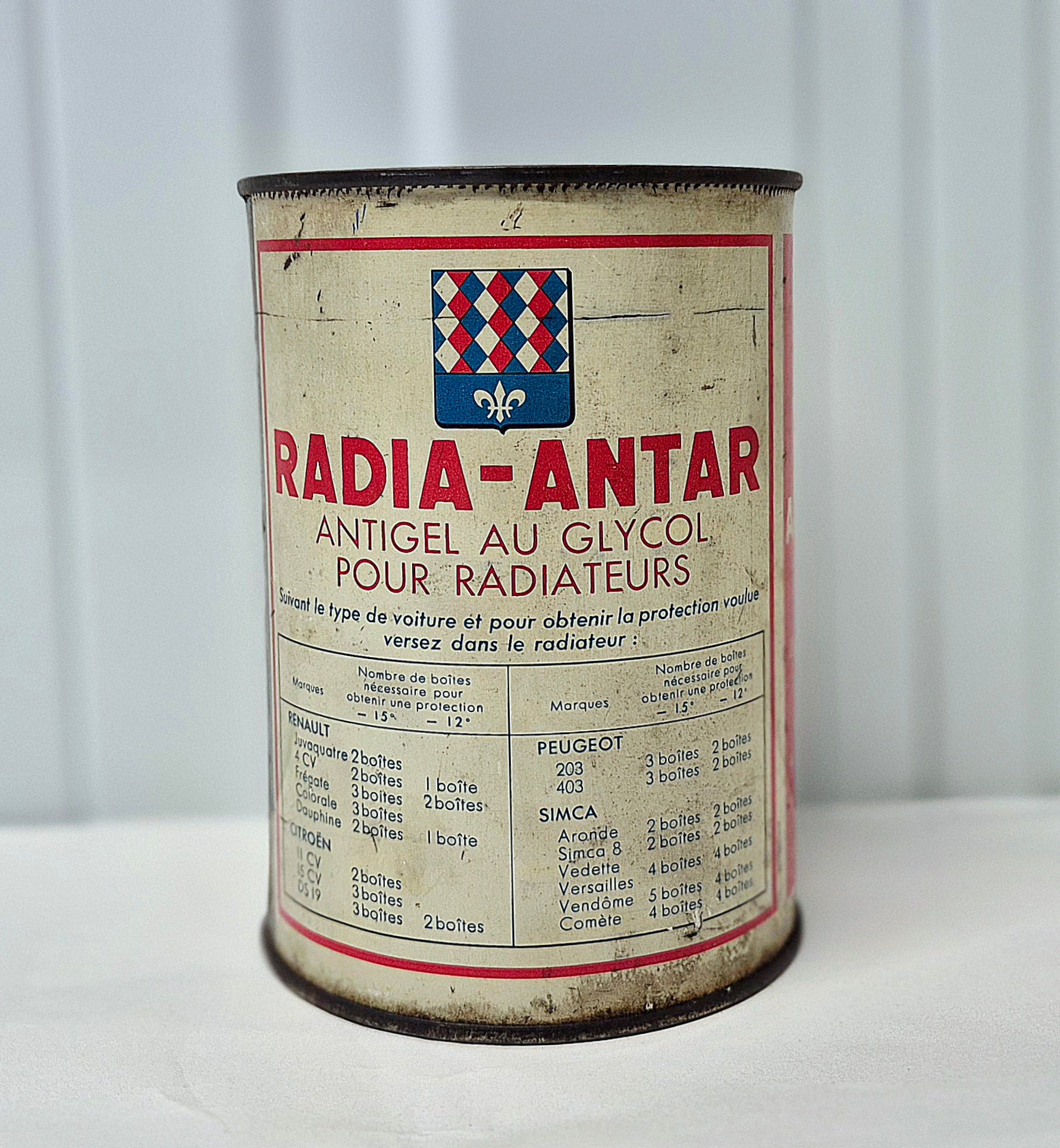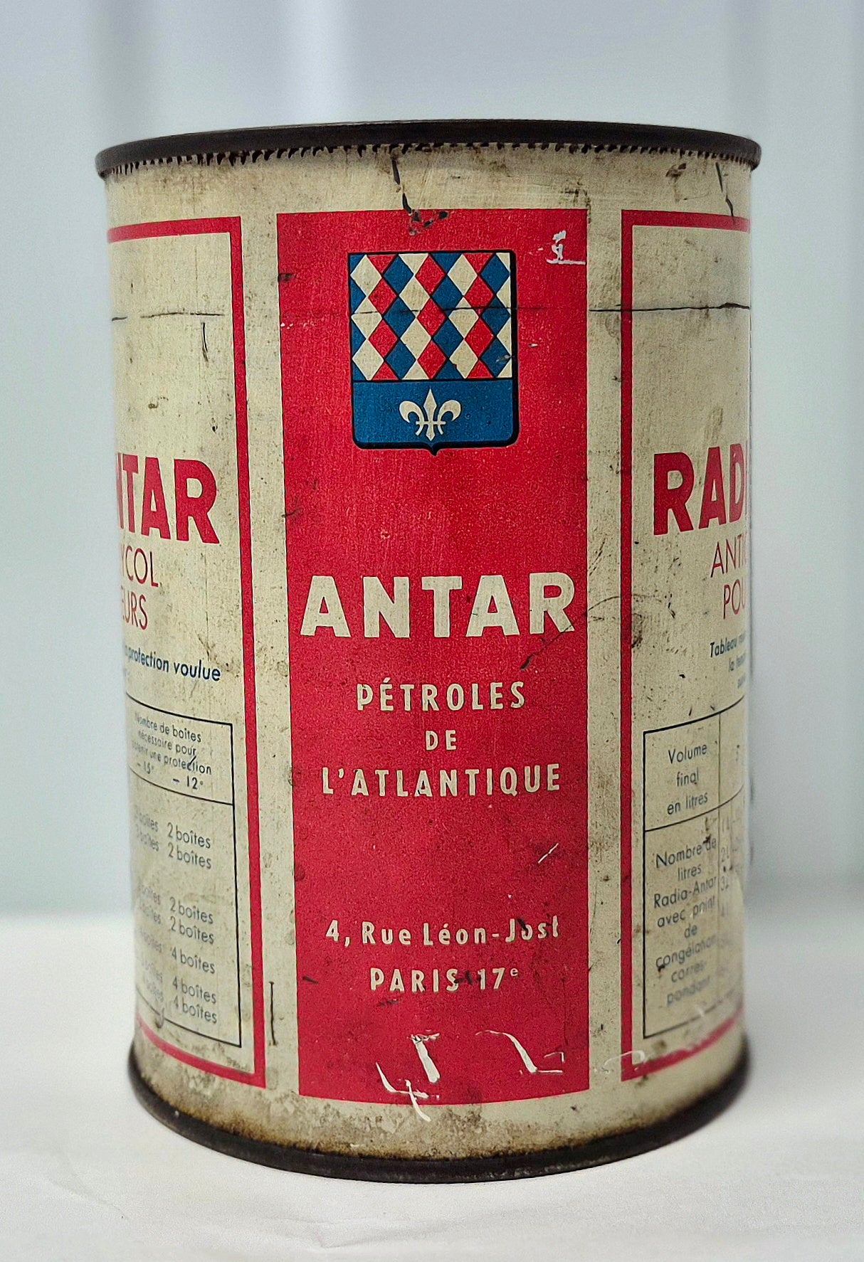 Bidon antigel radia antar, bon état general, complètement ouvert sur le dessus .