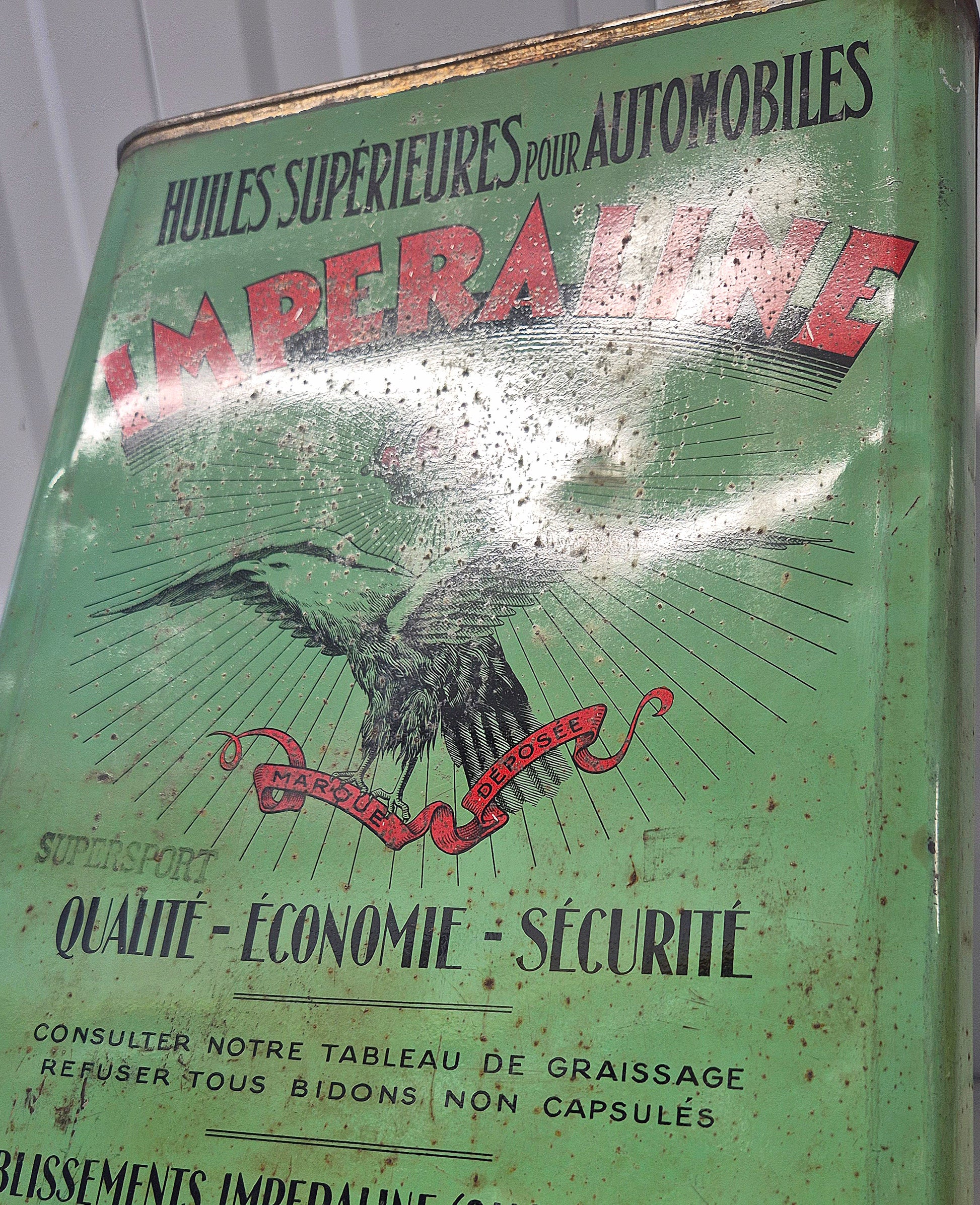 Superbe et rare bidon Imperaline 10 LITRES, bel état général sur toutes les faces, litho très brillante, le bidon mesure 30cm de haut.