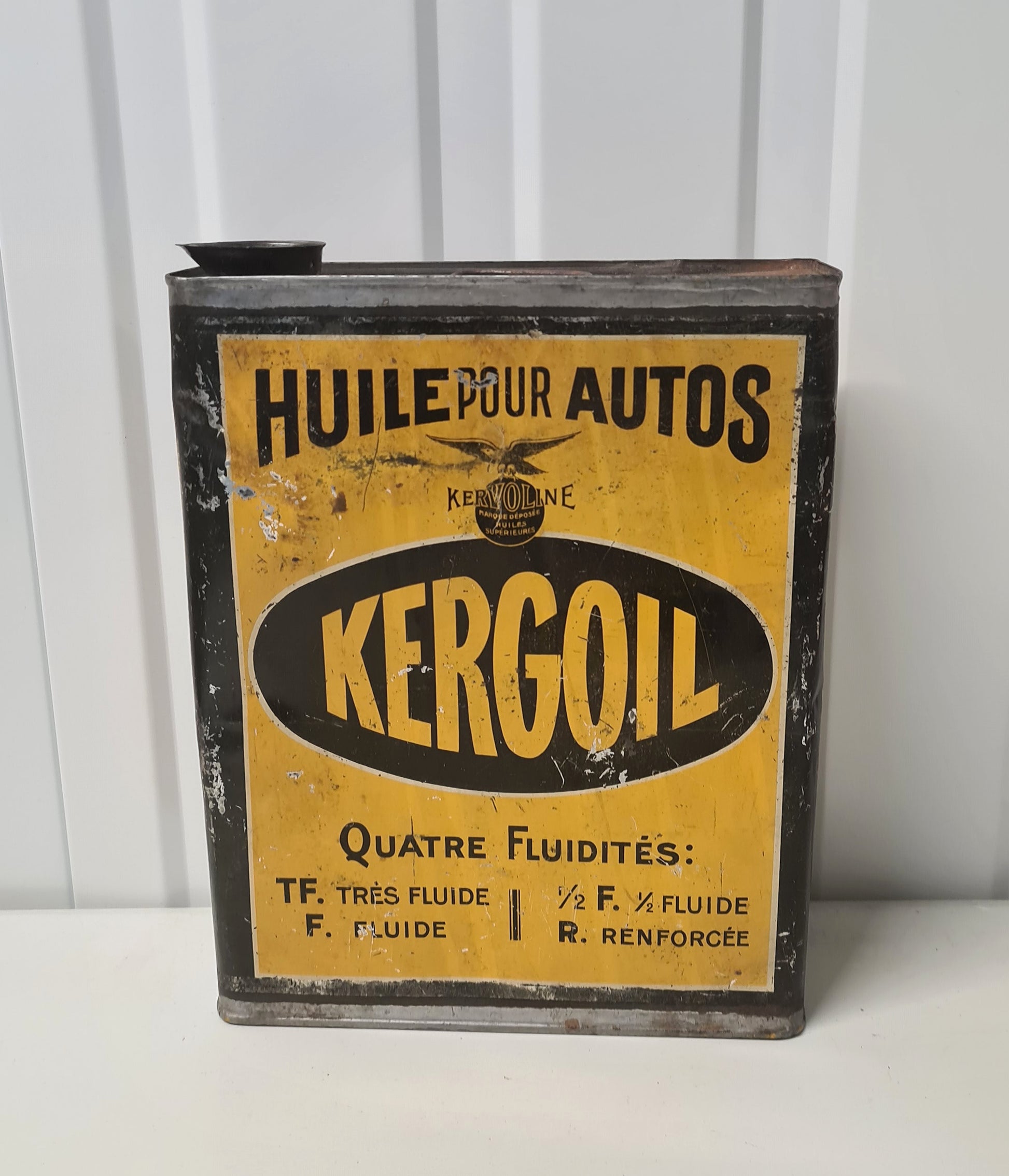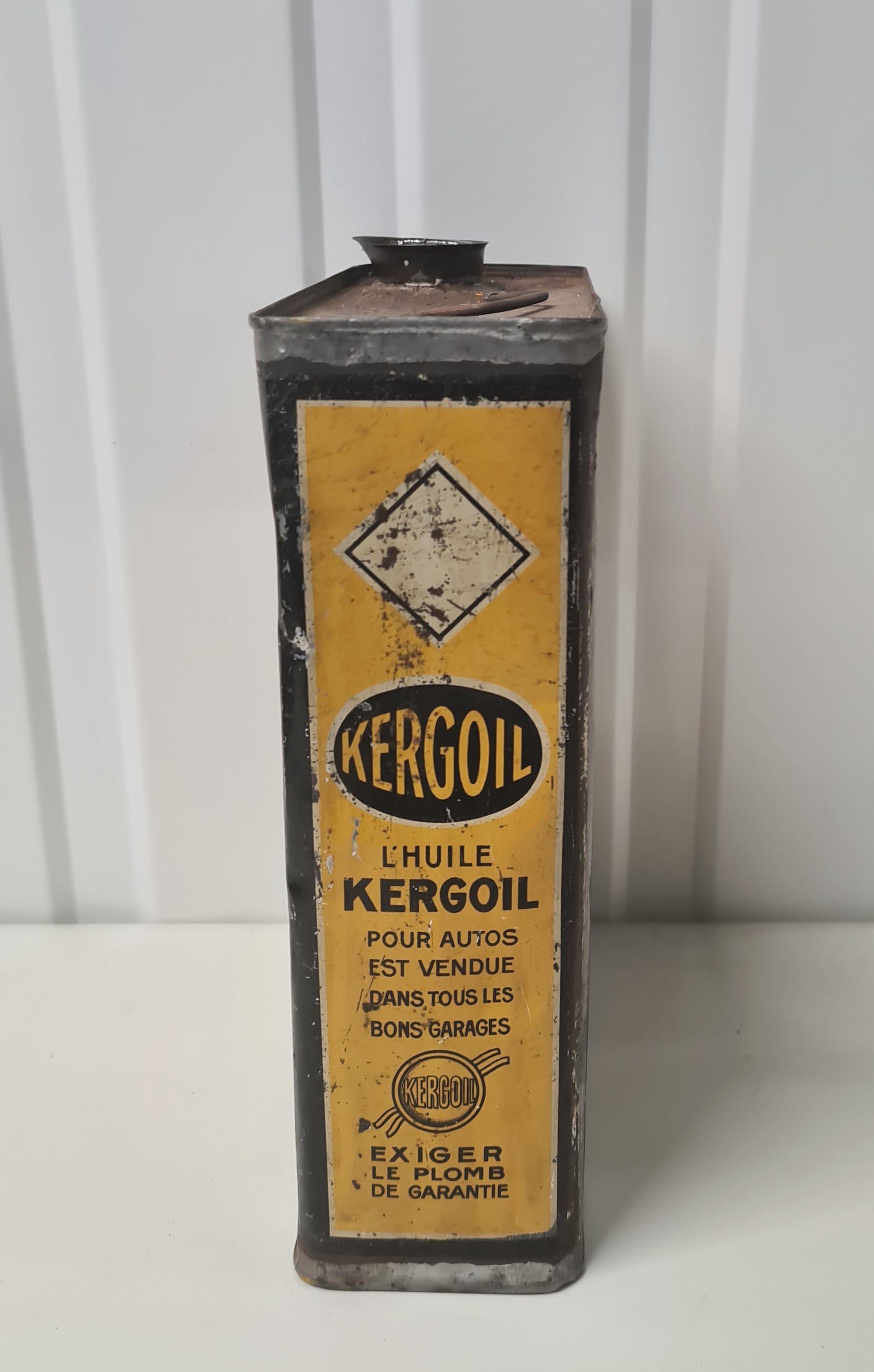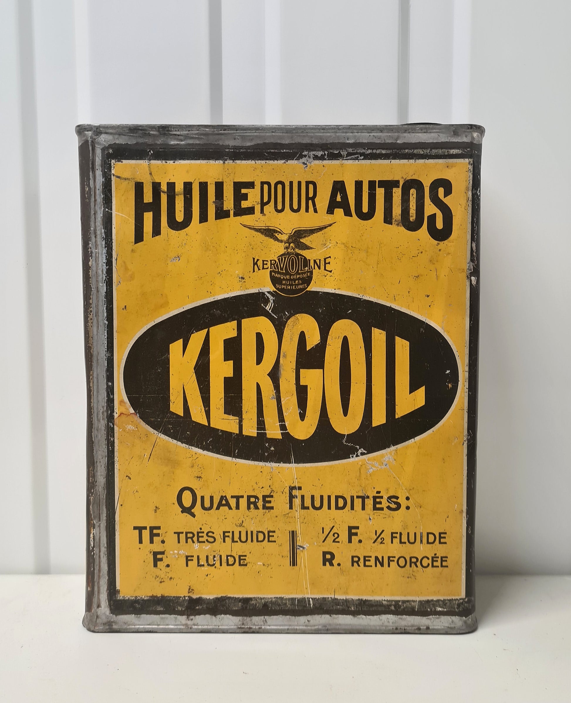 Très rare bidon d'huile Kergoil illustré de l'aigle KERVOLINE, grand format 5L (28cm de haut), voir photo 5 par rapport au modèle 2L