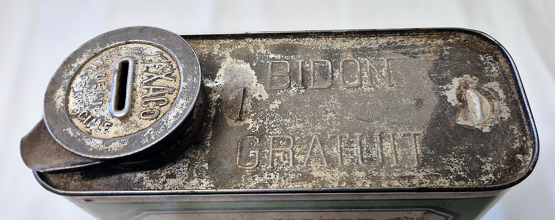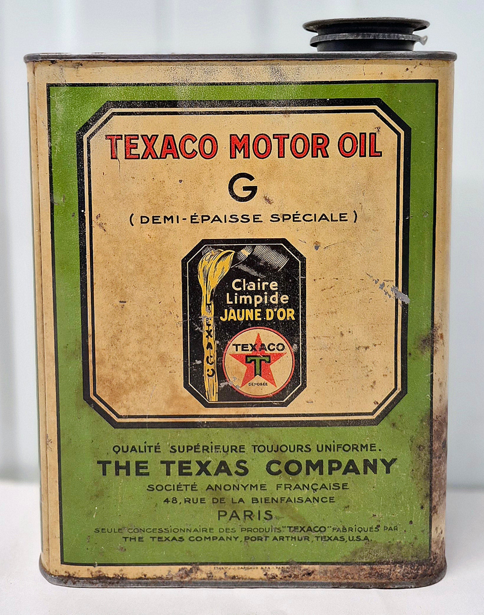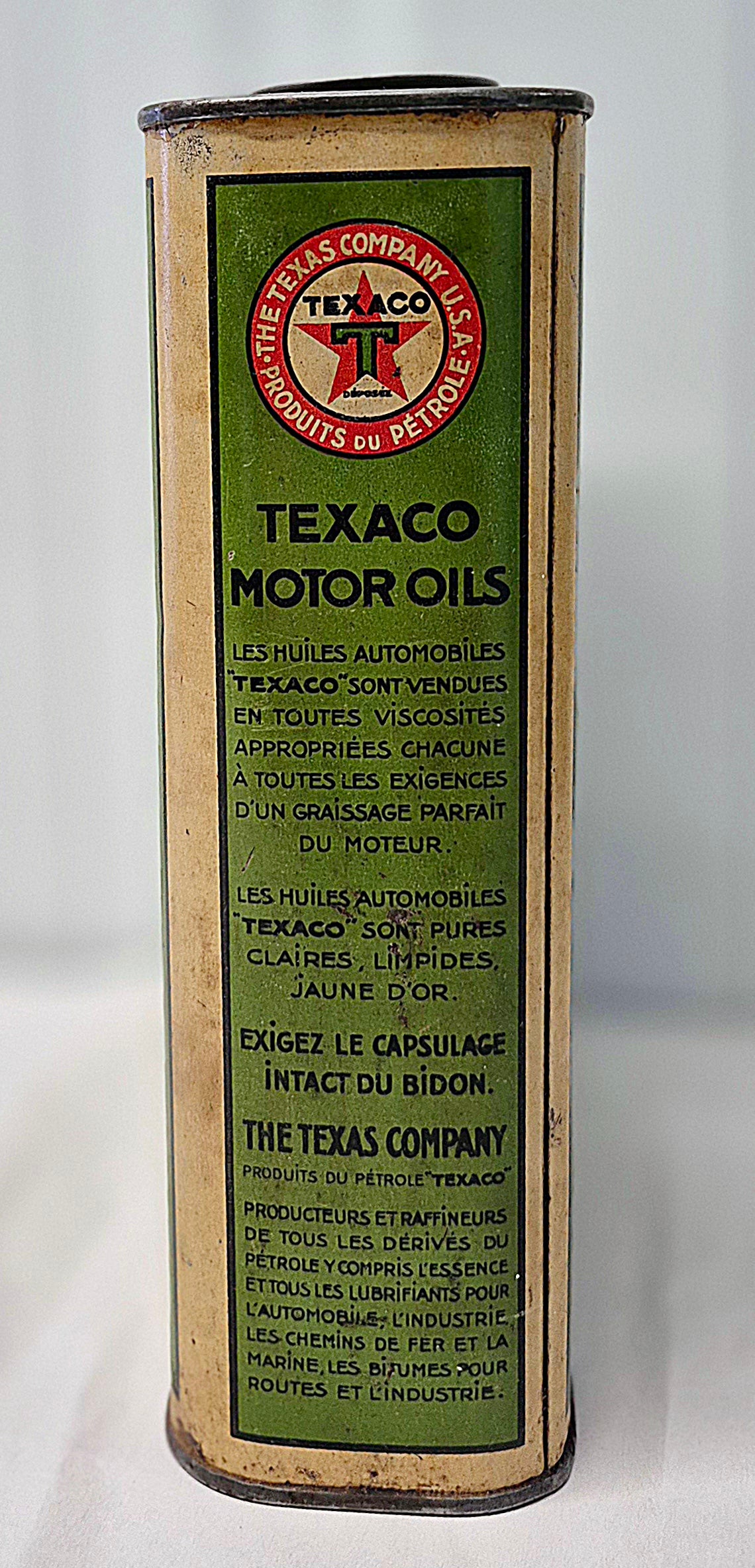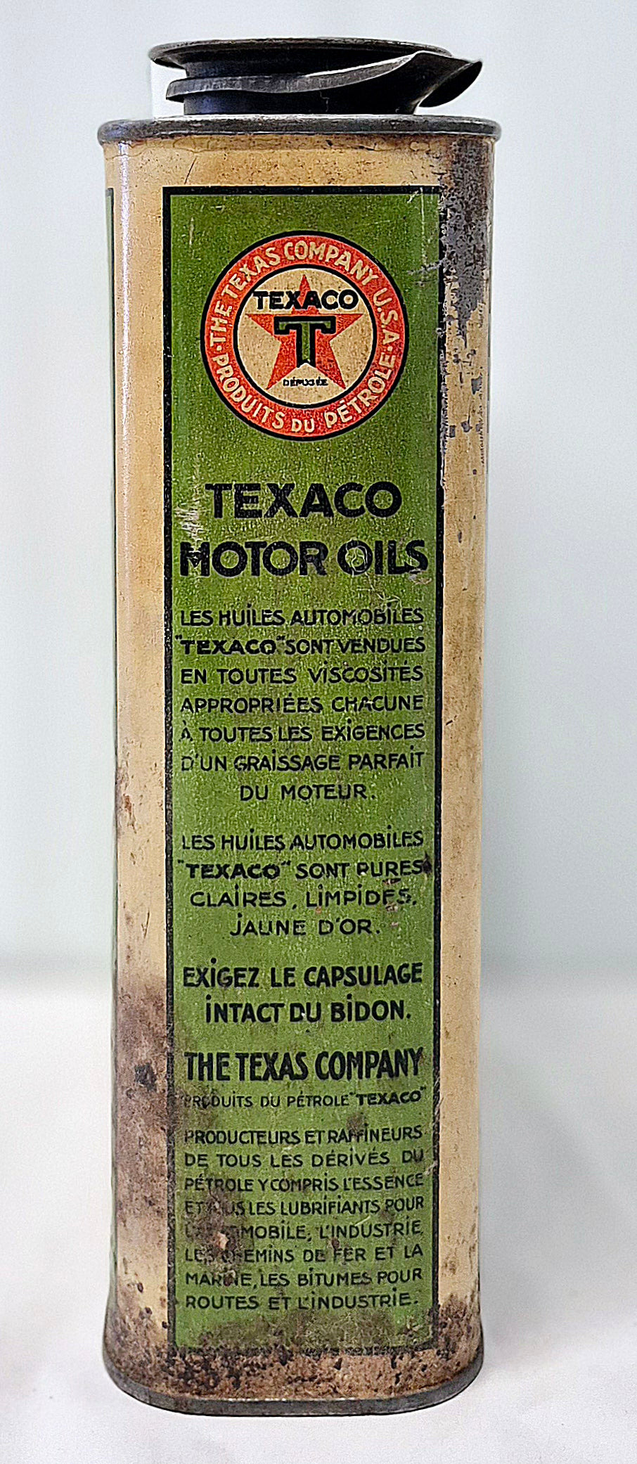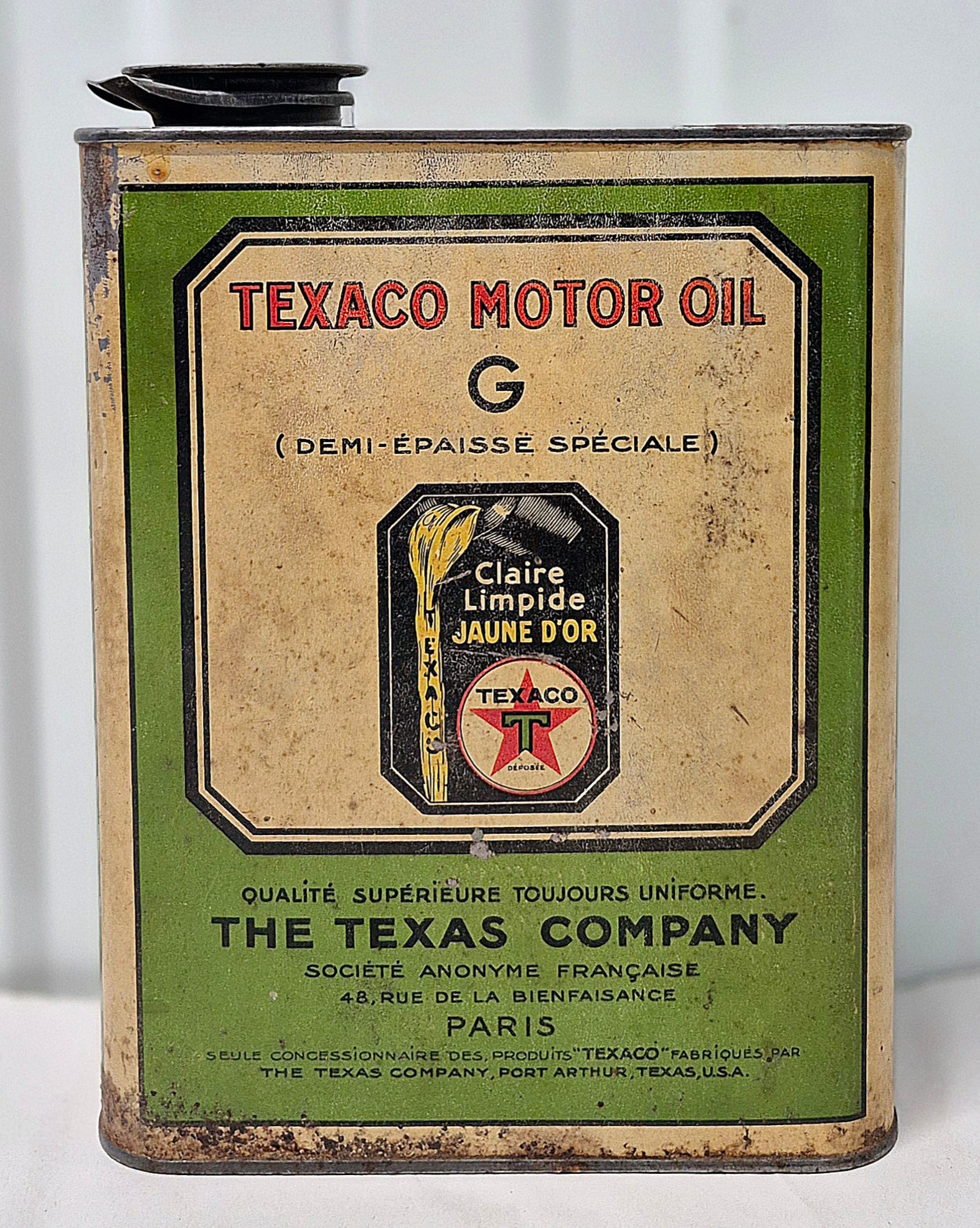 Joli bidon d'huile Texaco G, bel état général, a signaler qu'il manque la poignée, envoi avec assurance possible sur demande.
