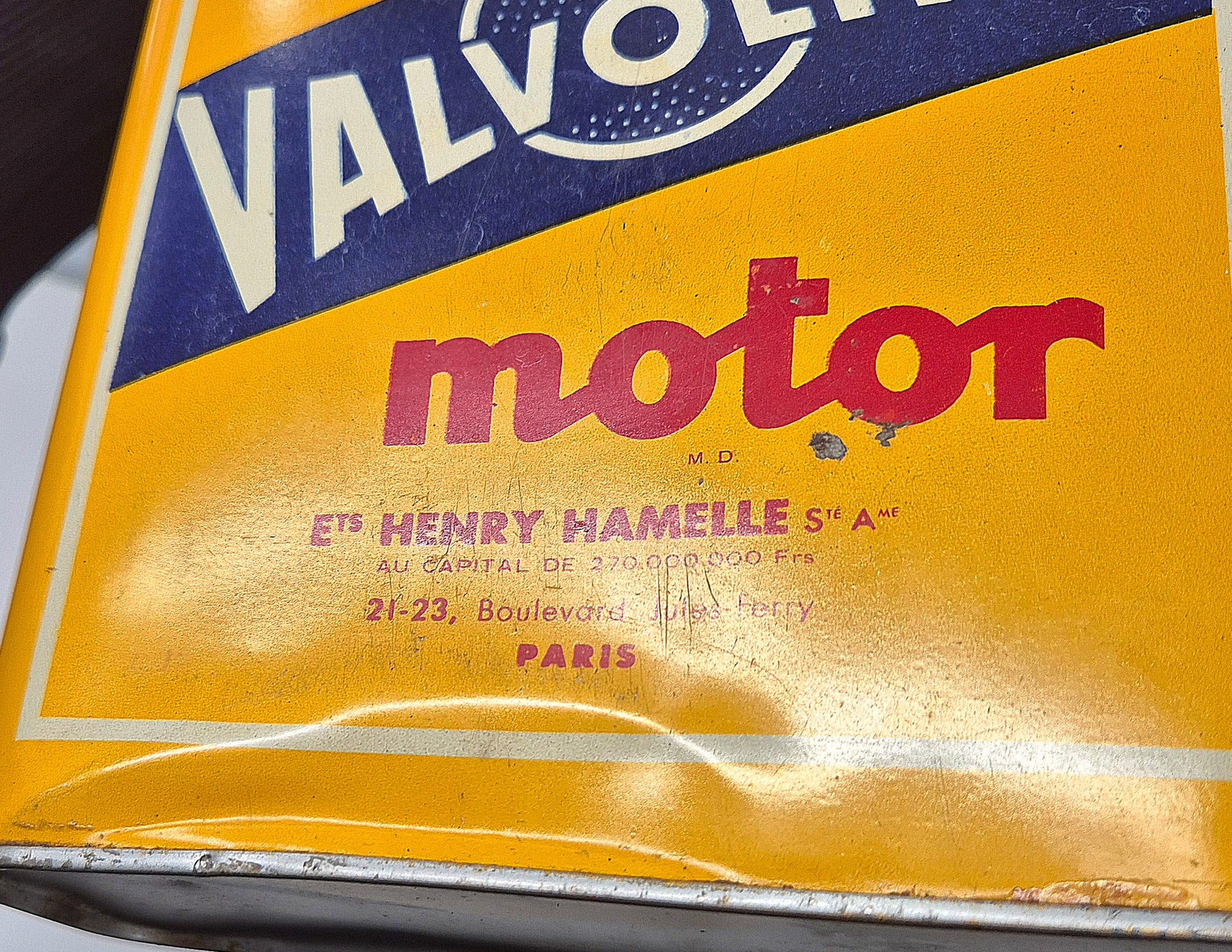 Rare bidon d'huile Valvoline de 1950, lithographie en très bon état de conservation... a signaler des enfoncements sur la partie basse sur les 2 faces... bien regarder les photos détaillées.