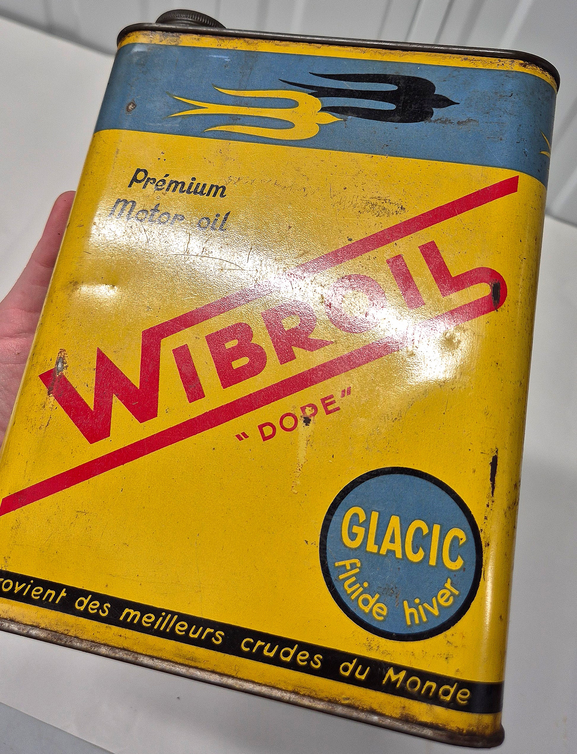 Bidon d'huile Wibroil en très bon état, pas courant, litho bien brillante, quelques petits défauts
