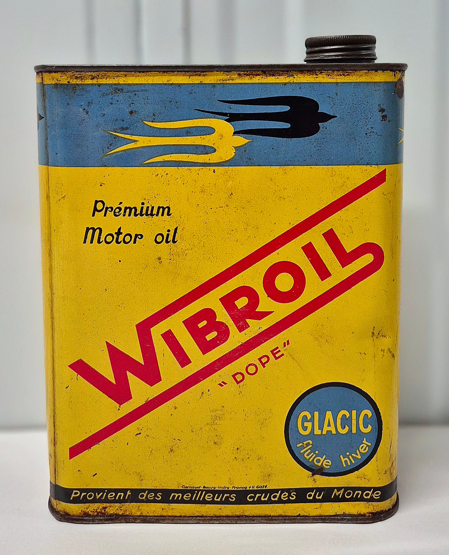 Rare bidon d'huile WIBROIL en très bon état général, couleurs vives