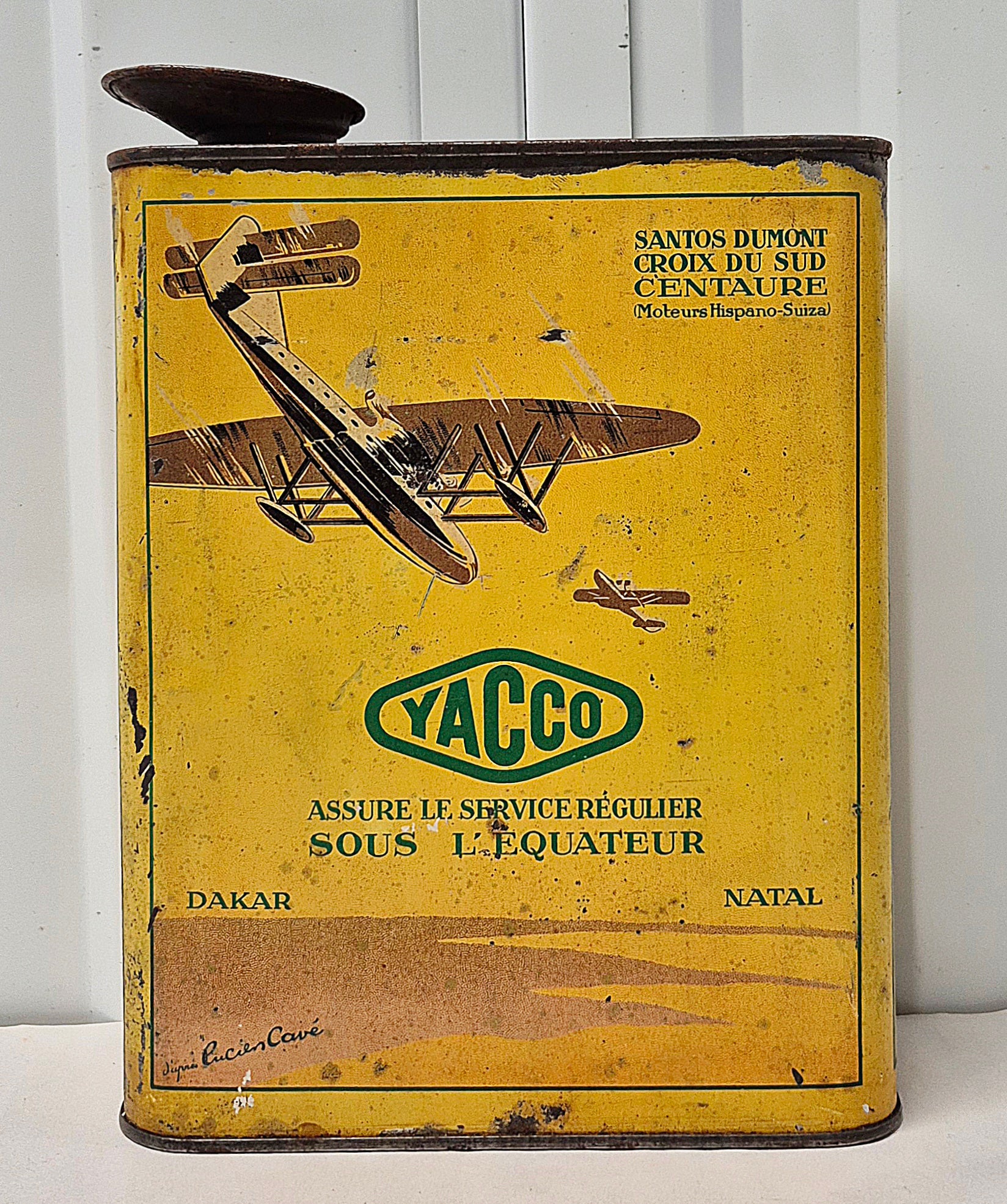 Beau et rare bidon d'huile Yacco avion "Santos Dumont" bel état général, litho en bon état, très légèrement passée, bien regarder les photos.