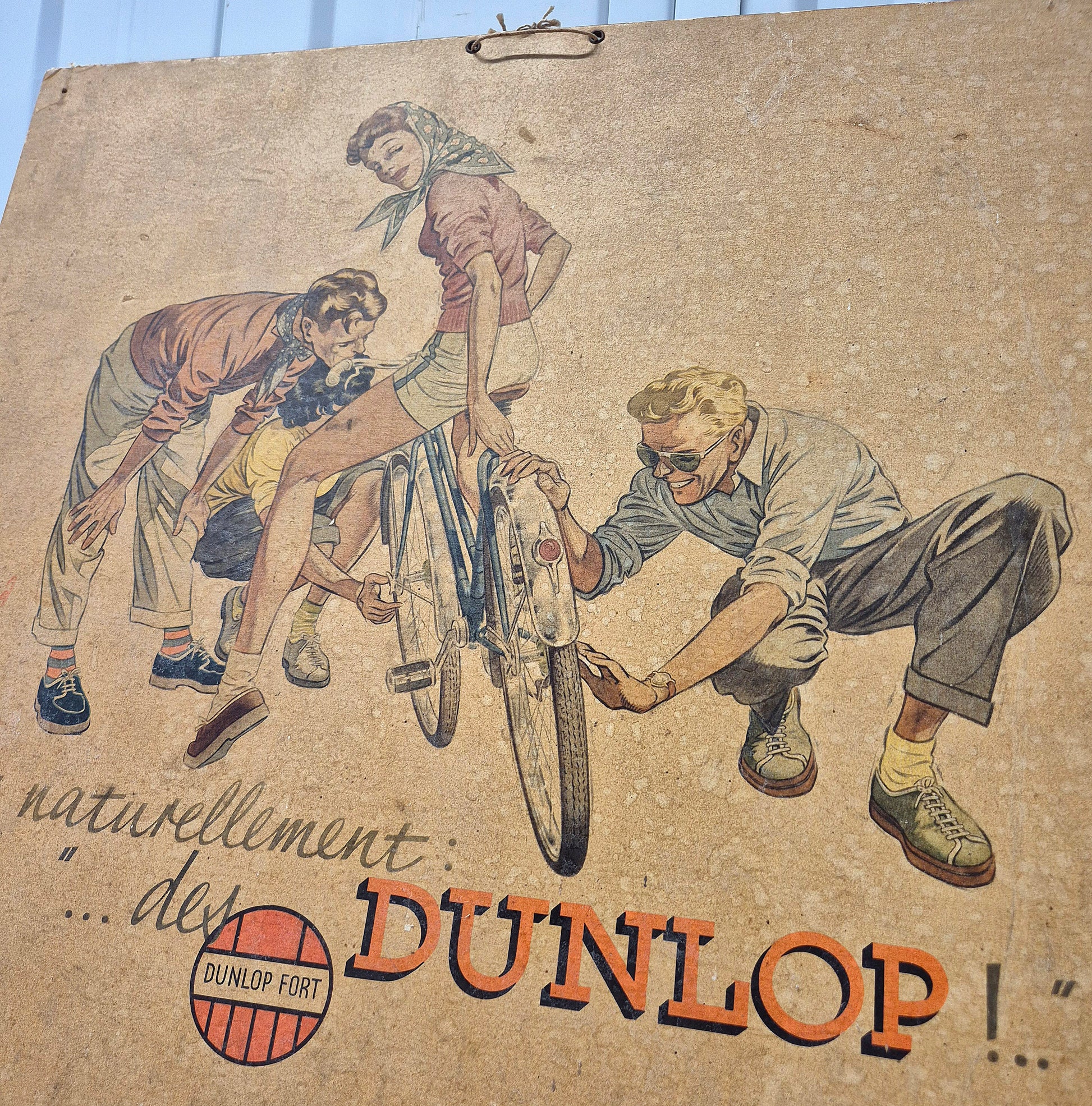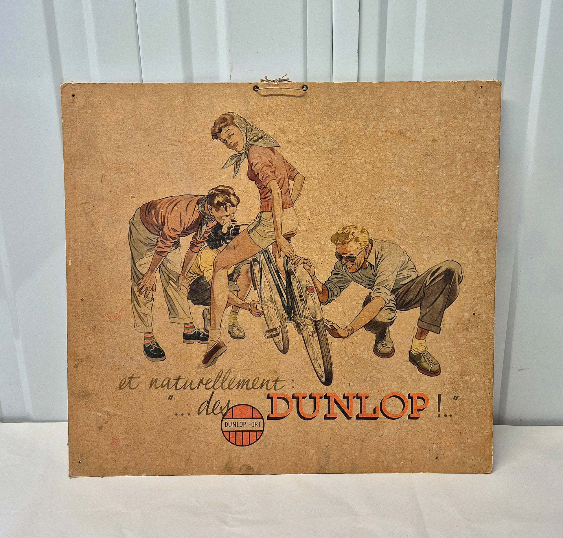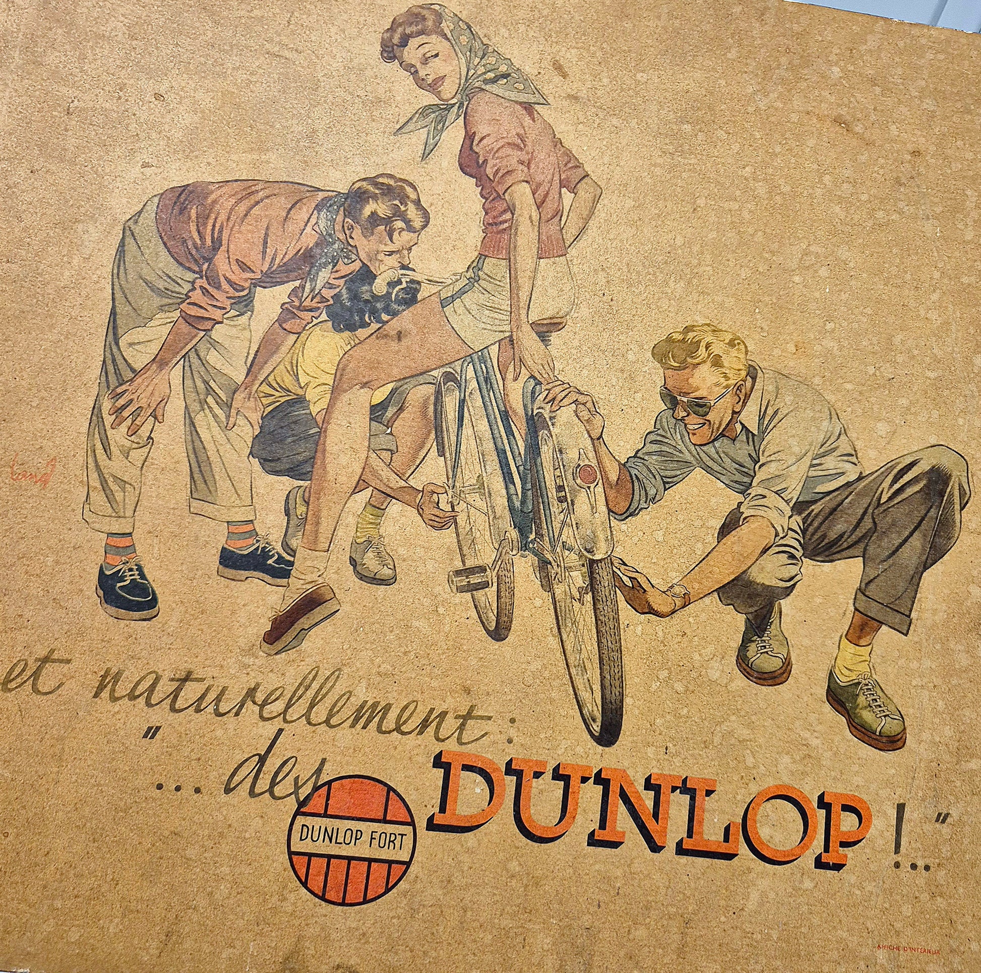 Rare carton Dunlop joliment illustré, bon état général, exemplaire jaunie, signé sur la partie gauche. Format 45x42cm